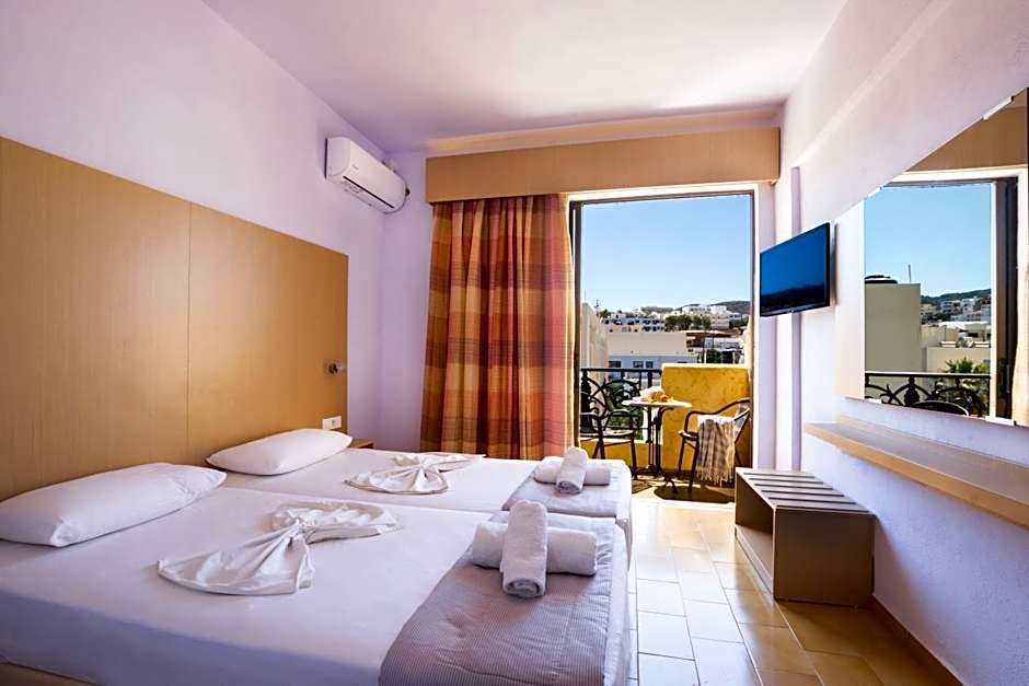 This air-conditioned triple room is consisted of of a flat-screen TV with satellite channels, a private bathroom as well as a balcony with pool views. The unit has 3 beds.